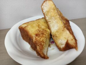 今日は分厚く切った食パンを使ってフレンチトーストを作りました。